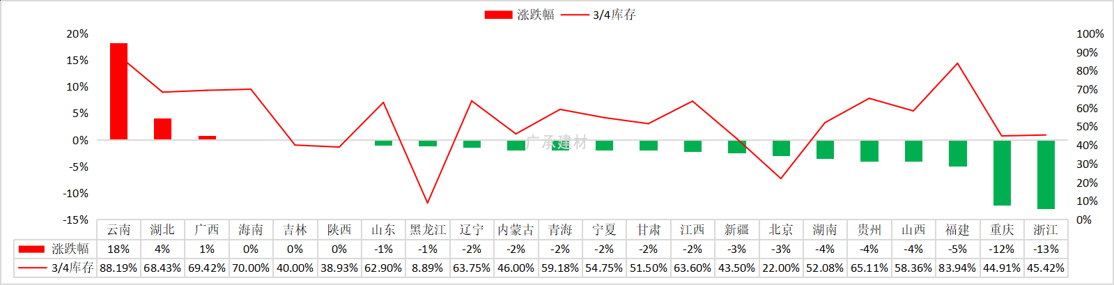 本周全国水泥熟料库容比较上周上升0.43%,全国水泥价格震荡偏弱。本周华中、华东地区水泥熟料库容比有所上升,市场需求不佳,库存上升,水泥价格下跌10-30元/吨;华东熟料库存小幅下降,主要因为窑线运转低位,需求逐渐恢复,部分区域水泥价格小幅探涨。下周市场需求如何变化,水泥熟料库存是否持续上升,水泥行情将如何走向?下面小编做简要分析。
