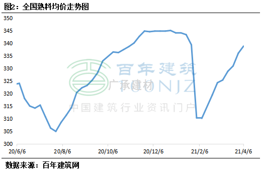 熟料价格:全国熟料均价338.9元/吨,较上周上涨2.8元/吨,涨幅0.84%,总体延续上涨趋势,华东地区市场需求旺盛,本地熟料供不应求,熟料价格稳中偏强运行;华中、华南地区市场旺季来临,熟料库存持续释放,价格或稳中偏强运行;西南地区市场恢复情况较好,熟料库存压力不大,价格或稳中偏强运行;西北、东北、华北地区水泥企业近期陆续开窑,熟料库存有小幅上涨,但尚处于累库状态,熟料价格或持稳运行。