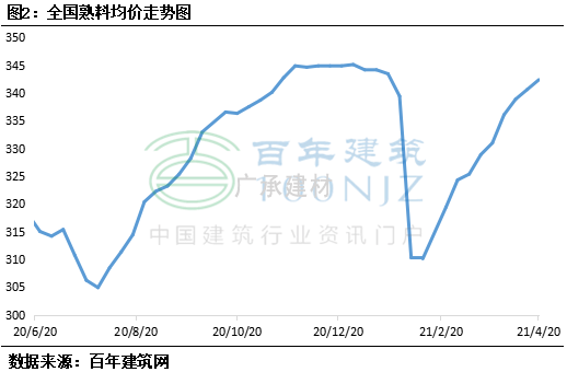熟料价格:全国熟料均价342.4元/吨,较上周上涨2.3元/吨,涨幅0.67%,总体延续上涨趋势,华东地区熟料价格延续高位运行态势,下游市场需求旺盛,叠加当地水泥企业错峰生产落实情况较好,熟料库存持续走低;云南昆明、玉溪地区因市场需求回暖,本地水泥价格大幅上涨50元/吨,熟料价格相应跟涨50元/吨。东北辽宁地区因实行“双控”政策,熟料产能受限,叠加当地市场需求恢复情况较好,本地熟料供不应求,价格上涨10-20元/吨。