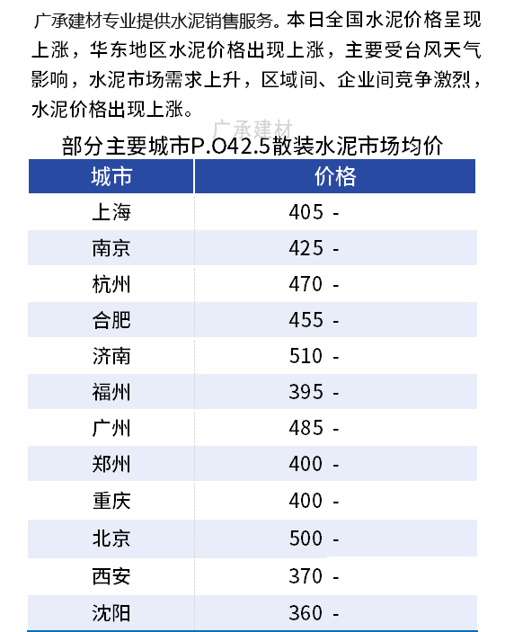 ◎ 上海:上海地区部分品牌水泥价格上涨10元/吨。推荐产品:台泥水泥袋装M32.5