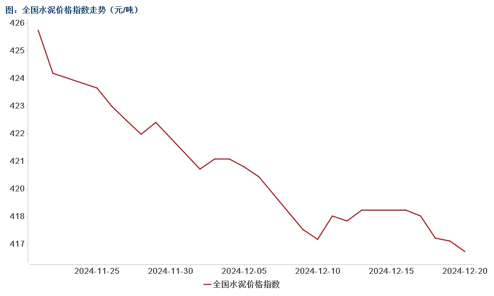 12月20日,全国水泥价格指数417元/吨,较上一日跌0.42元/吨,日环比跌0.10%。