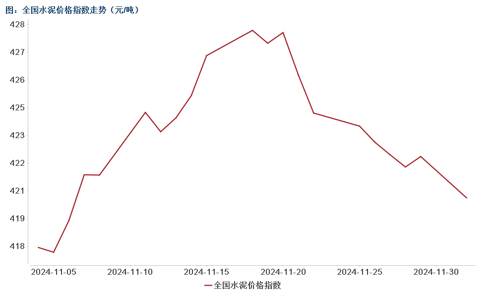12月2日,全国水泥价格指数420元/吨,较上一日跌1.90元/吨,日环比跌0.45%。
