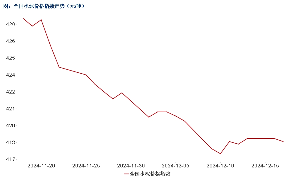 12月17日,全国水泥价格指数419元/吨,较上一日跌0.24元/吨,日环比跌0.06%。